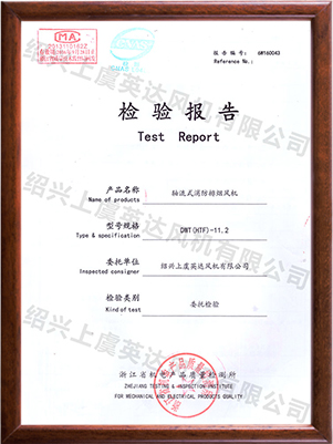 該風機作為消防風機應當通過JB/T 10563-2006《一般用途離心通風機技術條件》檢驗,應保證常規性能符合標準要求,并提供擁有檢測資質的機構出具的檢測報告。同時還需要經國家指 定的消防安全檢測機構按照GA 211-200 9《消防排煙風機耐高溫試驗方法》檢測,在主風道介質溫度為280℃時必須能夠連續運行30分鐘以上,保證耐高溫性能符合標準要求,并提供擁有 檢測資質的機構出具的檢測報告。