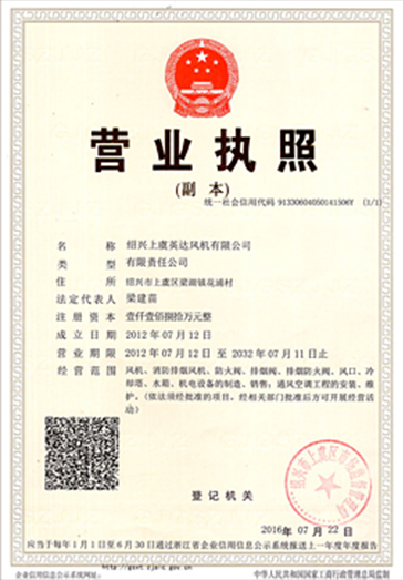 英達風機采用生產設備和檢測手續均齊全 的風機專用電機,并均通過ISO9001, 國家防爆認證,3C認證,能效認證。主要電機供應商有:ABB、 西門子(貝德)、浙江朝舜,浙江中特電機,浙江創新電機,等國內廠商。