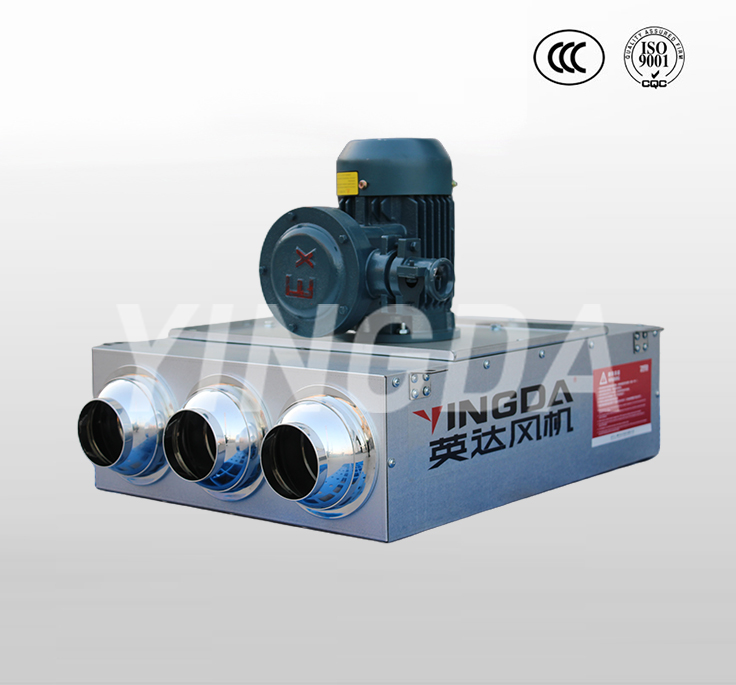 1.1.YDF型誘導(dǎo)風(fēng)機(jī)主要用于無風(fēng)管條件下,將多臺誘導(dǎo)風(fēng)機(jī)按一定距離和方向依次排列,以少量高速噴流氣體帶動(dòng)誘導(dǎo)周圍靜止的空氣,達(dá)到高效經(jīng)濟(jì)的通風(fēng)換氣效果。也可單獨(dú)布置在通風(fēng)死角區(qū),通過誘導(dǎo)風(fēng)機(jī)高速噴流達(dá)到稀釋廢氣作用。